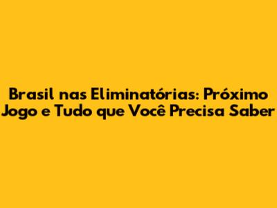 Chegou a hora de falar sobre o que realmente interessa: os detalhes do próximo jogo do Brasil nas Eliminatórias! Para não perder nada, anote tudo aí: a data, o horário, o adversário e, claro, onde você poderá acompanhar essa partida eletrizante. Fique ligado, porque a ansiedade já começa a tomar conta!