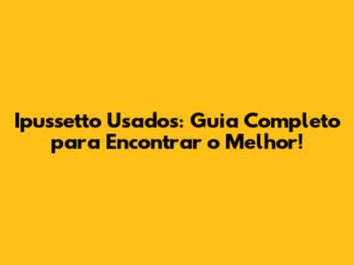 Ipussetto Usados: Guia Completo Para Encontrar O Melhor!