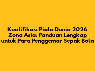 Guys, siap-siap! Gelaran sepak bola paling bergengsi, yaitu Piala Dunia, semakin dekat! Dan kali ini, kita akan membahas secara tuntas tentang Kualifikasi Piala Dunia 2026 Zona Asia. Buat kalian yang ngaku pecinta bola sejati, artikel ini wajib banget buat dibaca. Kita akan kupas tuntas mulai dari format, tim-tim yang bertanding, jadwal pertandingan, hingga peluang negara-negara Asia untuk lolos ke putaran final. Jadi, jangan sampai ketinggalan informasi pentingnya ya!