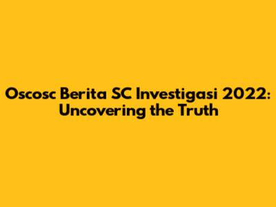 Oscosc Berita SC Investigasi 2022: What Happened?