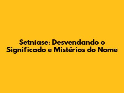 Setniase: Desvendando O Significado E Mistérios Do Nome